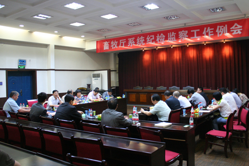 2011年5月25日,畜牧厅纪检组在我院召开了畜牧厅系统纪检监察效能建设工作例会。厅系统各单位的领导和全体纪检监察干部参加了会议。畜牧厅纪检组副组长张宏伟主持了会议。