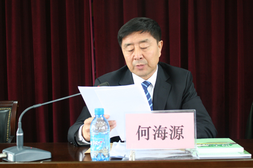 畜科院党委书记何海源作了题为“精心组织 团结鼓劲 求真务实 扎实工作 以饱满的热情做好自治区级精神文明创建复验工作”的动员讲话