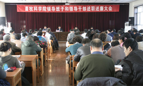 2010年12月29日上午,畜牧科学院在四楼多功能厅举行了2010年度畜牧科学院领导班子和领导干部述职述廉大会。