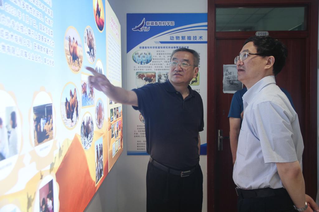 步志高所长对我院在科技创新和成果转化方面取得的成绩给予了充分肯定。他表示,新疆畜牧科学院立足新疆畜牧业高质量发展需求,在草食家畜学科领域开展的科研工作和创新成果在国内和周边“一带一路”国家都具有较大影响力,研究特色鲜明,科研成果丰富,转化应用成效显著,值得学习和借鉴。他指出,新疆在我国的战略地位极为重要,促进新疆畜牧业产业高质量发展对于稳定边疆促进农牧民增收增强民族团结具有重要意义。同时,新疆拥有丰富的畜禽优势资源,对开展动物疫病控制及疫苗研发等方面的研究具有先决条件,希望通过中国农业科学院西部农业研究中心建设,聚焦新疆动物疫病防控存在的突出问题和短板弱项,深化与新疆畜牧科学院在动物流行病防控、技术创新、成果转化等方面开展合作,共同申报承担课题、培养人才,激活科研存量、优化资源配置,做到人尽其才、物尽其用。