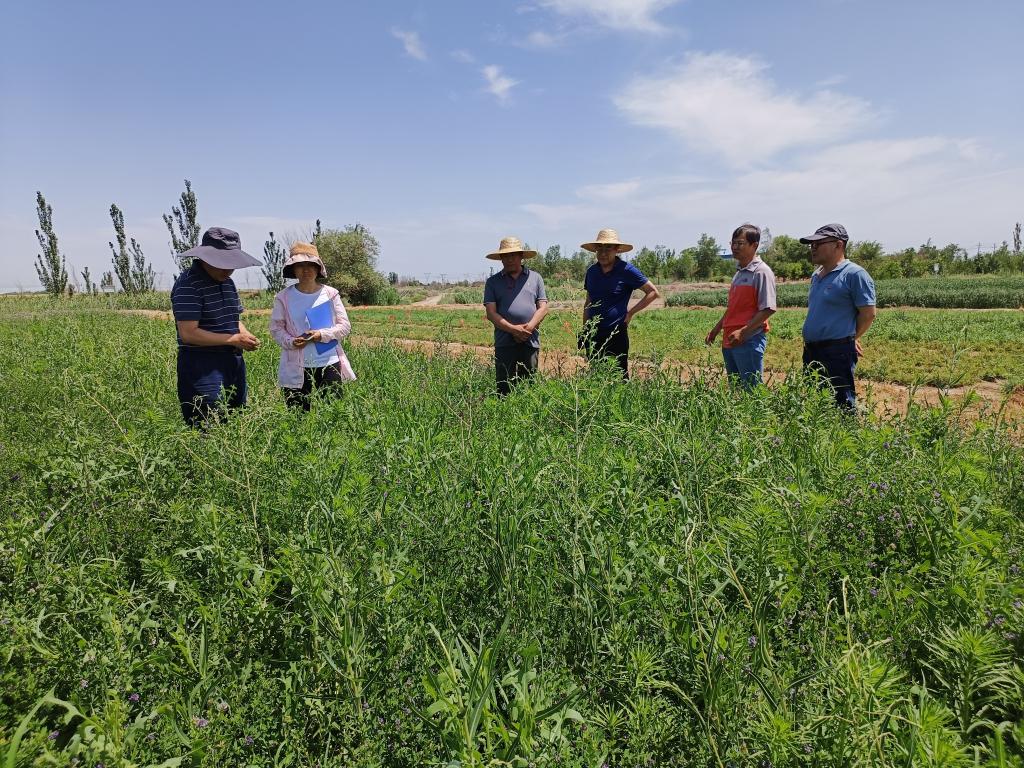 为解决牧草生产中存在的品种适应性、病害、虫害和草害防治等技术问题,近日,国家牧草产业技术体系病害岗位专家、兰州大学草地科技学院李彦忠教授,国家牧草产业技术体系岗位专家、四川省牧草育种攻关首席专家、四川农业大学张新全教授一行莅临昌吉综合试验站呼图壁核心试验区开展实地交流调研和岗站对接工作。新疆畜牧科学院草业研究所所长艾克拜尔·阿不都热依木、国家牧草产业技术体系昌吉综合试验站站长李学森研究员及核心团队成员参加调研。