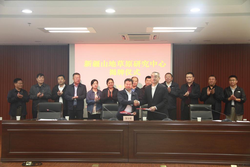 9月25日上午,新疆畜牧科学院隆重举行“新疆山地草原研究中心”“中国农业科学院草原研究所新疆分中心”揭牌仪式。新疆畜牧科学院党委委员、副院长曹宏斌主持仪式,中国农业科学院草原研究所党委副书记、所长林克剑,自治区畜牧兽医局党组成员,新疆畜牧科学院党委书记、副院长冯东河签署共建协议并为两个中心揭牌。中国农业科学院草原研究所、中国农业科学院西部农业研究中心、自治区农业农村厅、自治区畜牧兽医局、自治区林业和草原局有关领导,院机关各处室、院属各研究所负责人和科技工作者共同见证了这一历史时刻。