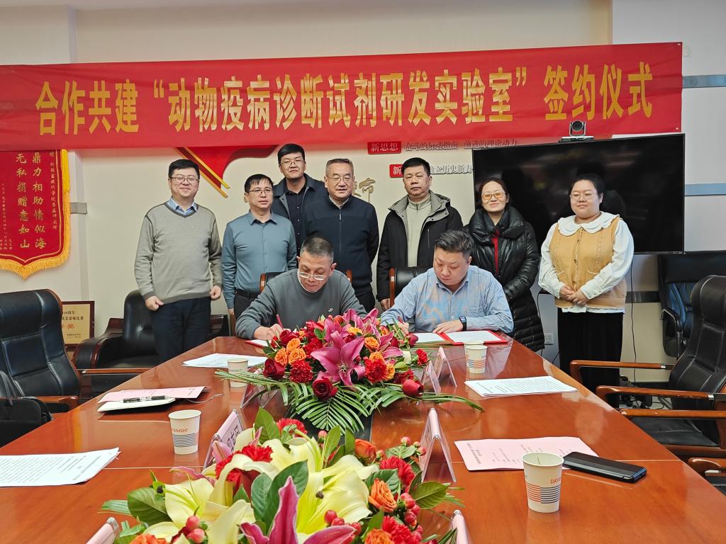 2月2日下午,新疆畜牧科学院兽医研究所与新疆新域晟生物科技有限公司合作共建动物疫病诊断试剂研发实验室签约仪式在兽医研究所举行。自治区畜牧兽医局党组成员,新疆畜牧科学院党委书记、副院长冯东河,新疆新域晟生物科技有限公司董事长严明出席了签约仪式并致辞。