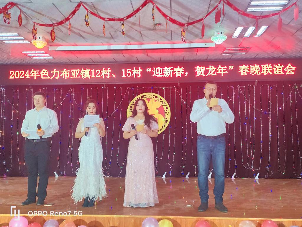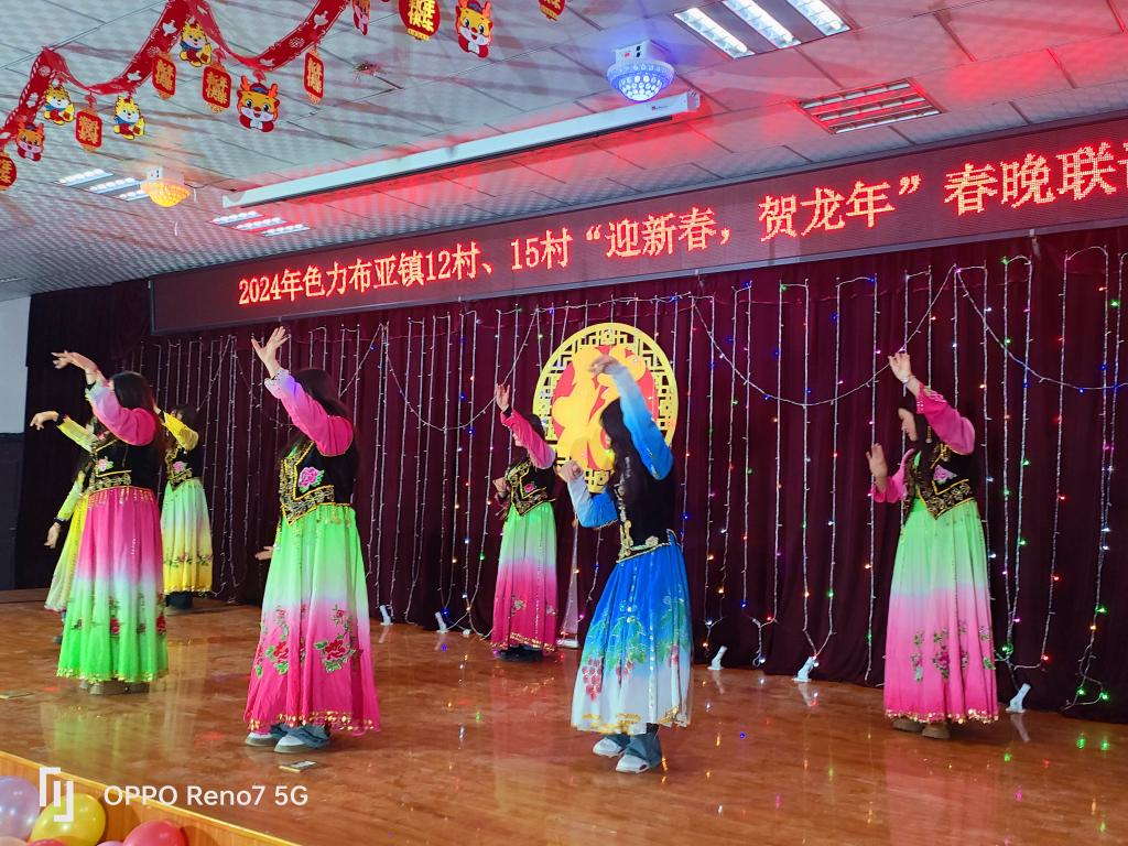 为深入贯彻落实新时代党的治疆方略,让“文化润疆”深入人心,大力弘扬中华传统文化,在新春佳节来临之际,新疆畜牧科学院驻喀什地区巴楚县色力布亚镇阿勒台开斯克村、拜什吐普村工作队共同组织群众举行了“迎新春,贺龙年”春节联谊晚会。喀什地区巴楚县色力布亚镇党委、政府相关领导,院驻村工作队、村两委以及村民共380余人参加了联欢。