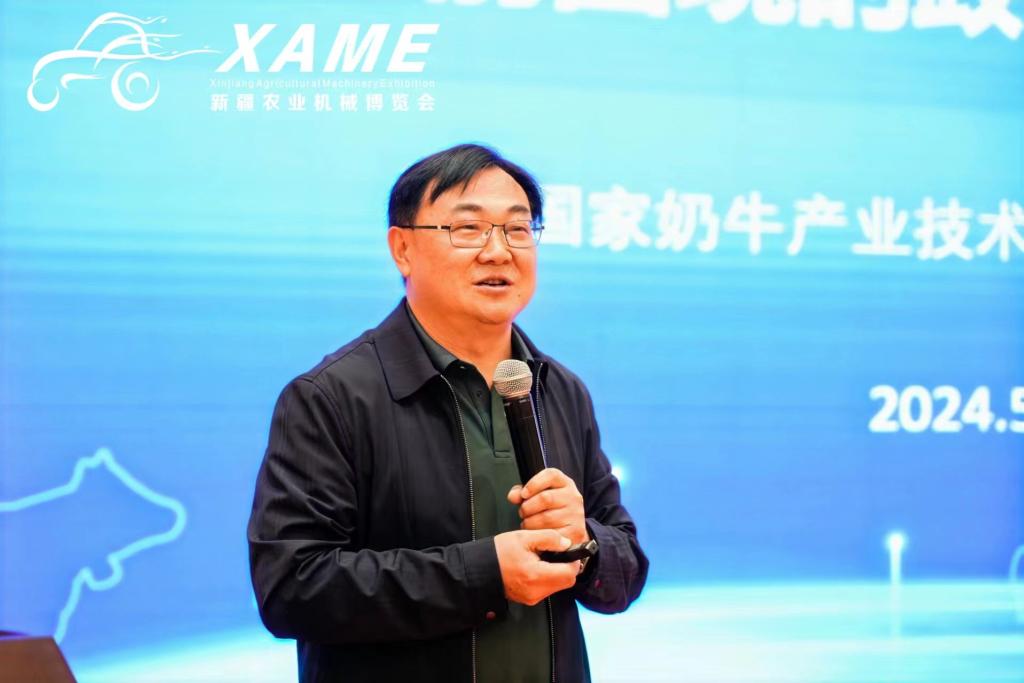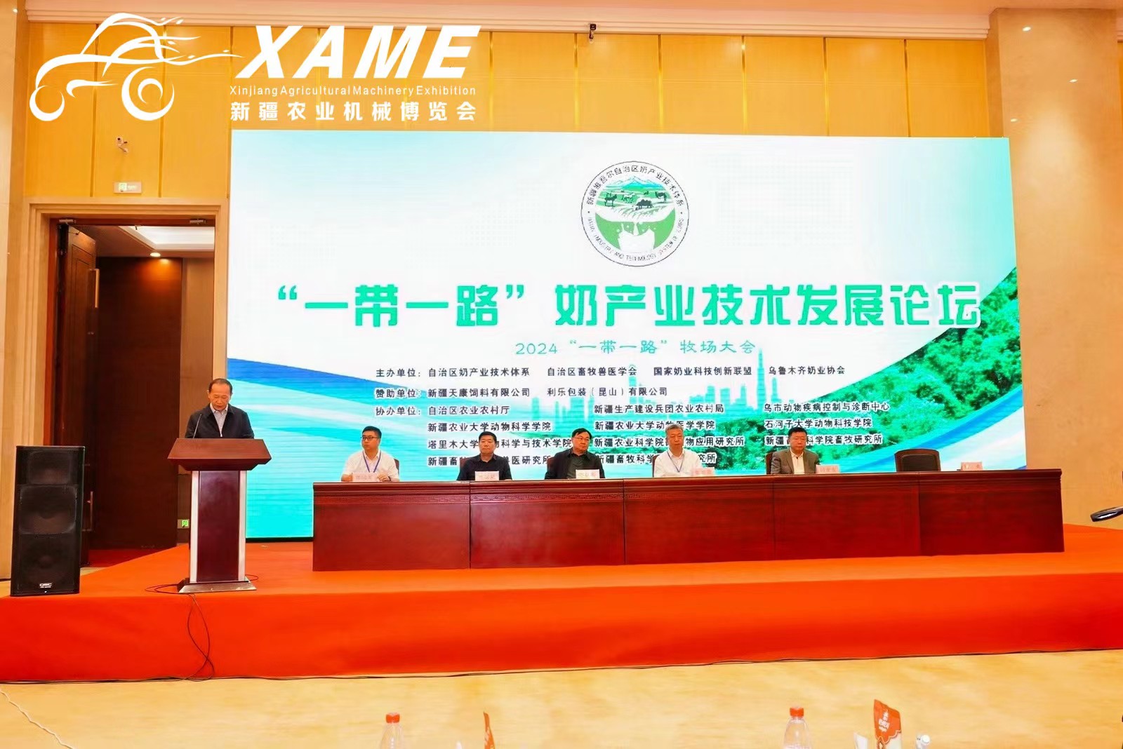 5月26日,由自治区奶产业技术体系主办,自治区农业农村厅、新疆生产建设兵团农业农村局、新疆畜牧科学院、新疆农业科学院、新疆农业大学、石河子大学、塔里木大学等协办的“一带一路”奶产业技术发展论坛在新疆国际会展中心顺利召开。会议采用线上线下直播的方式召开,自治区奶产业技术体系首席、新疆畜牧科学院饲料研究所副所长郭同军主持会议。自治区农业农村厅党组成员、二级巡视员张加群、新疆畜牧科学院党委委员、副院长曹宏斌、新疆生产建设兵团农业农村局党组成员、副局长杨勇等领导,国家奶牛产业体系首席科学家李胜利、全国畜牧总站首席专家闫奎友等6名国家奶牛体系专家,33名自治区奶产业技术体系和马产业技术体系专家,92家企事业单位和新闻媒体,共计270余人参加会议。