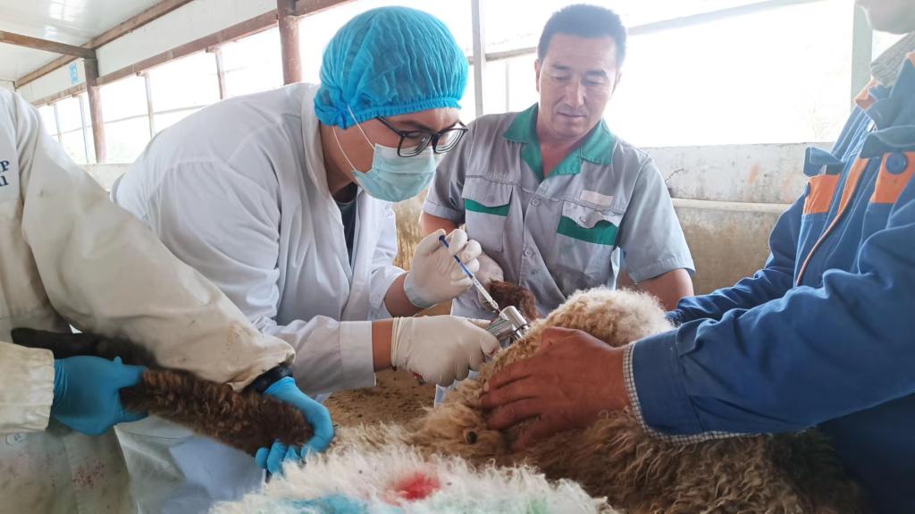 后期,该团队将结合自治区全面推广羊人工授精项目,为麦盖提县9个乡镇提供培育出的多胎基因公羊精液,落实“边选育、边推广、边改进”的策略,预计在10月10日指导完成1万只母羊的配种,为提升农户多浪羊品质,扩大多胎群体以及多胎公羊基因交换和联合育种奠定基础。