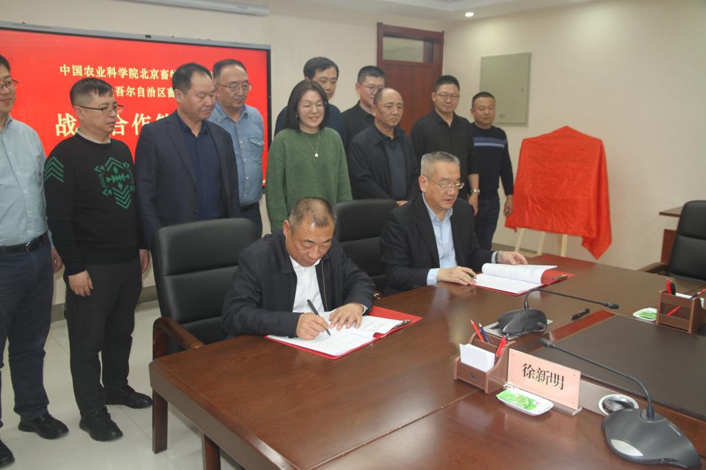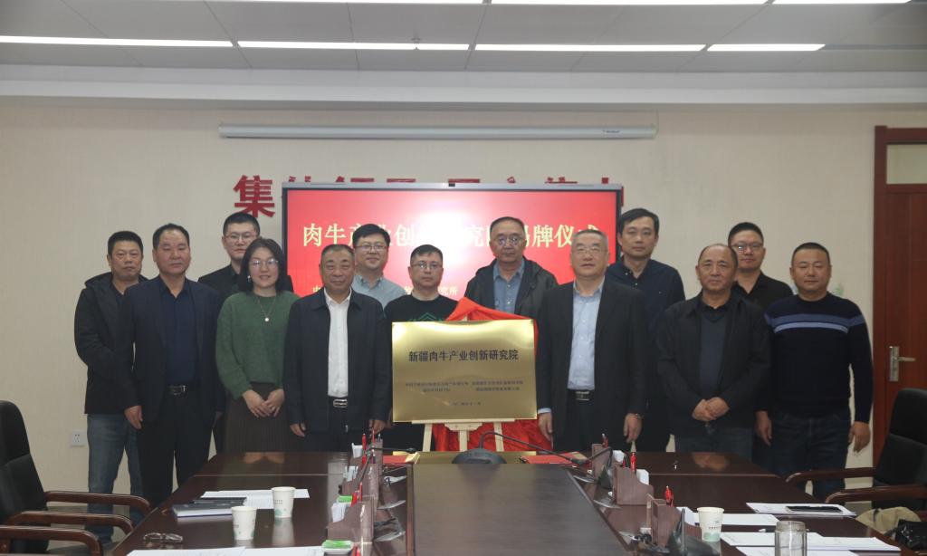 座谈会后,在与会人员的见证下,双方签订战略合作协议,共同为“新疆肉牛产业创新研究院”揭牌。