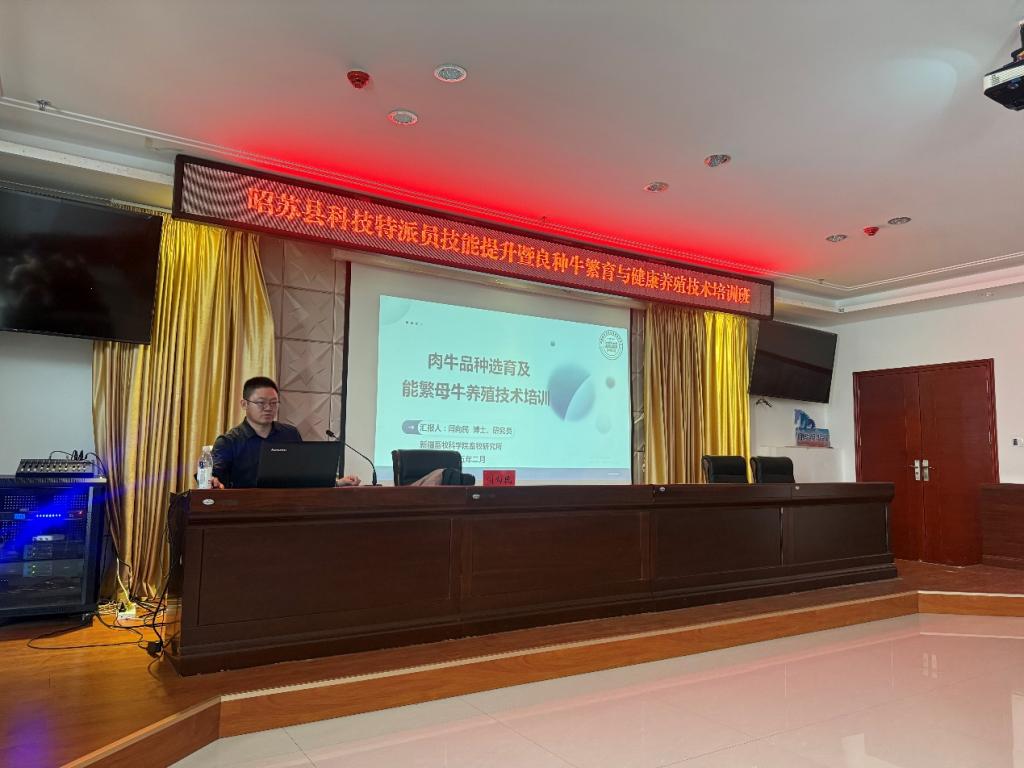 近日,我院褐牛创新团队受邀参加伊犁昭苏县畜牧发展中心举办的“昭苏县科技特派员技能提升暨良种牛繁育与健康养殖技术培训班”,开展了肉牛品种选育及能繁母牛养殖技术专题培训,昭苏县肉牛规模养殖场(户)、合作社技术骨干等共计80余人参加了此次培训。