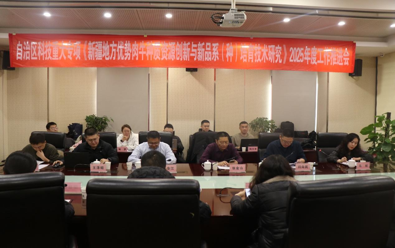 近日,自治区科技重大专项“新疆地方肉牛肉羊新品种培育”课题“新疆地方优势肉牛种质资源创新与新品系(种)培育技术研究”2025年度工作推进会在乌鲁木齐召开。会议由课题主持人自治区畜科院畜牧研究所闫向民研究员主持。新疆农业大学、中国农科院北京畜牧研究所、湖南农业大学、甘肃农业大学、自治区畜牧总站、伊犁州畜牧总站、尼勒克县牧强种畜有限公司等子课题负责人参会。