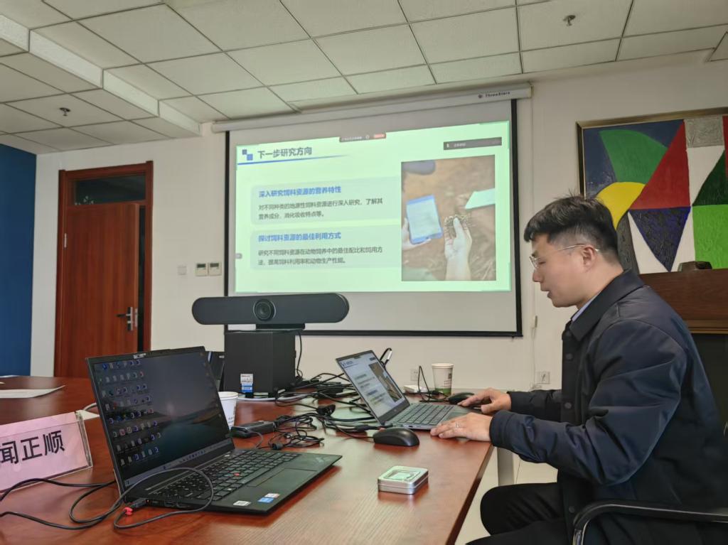 学术报告会上,闻正顺教授作了题为《地源性饲料资源开发与高效利用》的学术报告,重点对地源性饲料资源的最新研究成果,以及相关资源在实际生产中的高效利用方法等方面进行了阐述。他指出,我国作为饲料生产大国,玉米、大豆等饲料原料长期以来依赖进口,地源性饲料资源的开发是破解这一难题的关键所在。我国地源性饲料资源丰富,主要涵盖农渔加工副产物,林果业加工副产物等,这些资源能为畜牧业提供充沛的饲料来源,而且其价格相对低廉,有助于显著降低饲料成本。同时,利用地源性饲料还能减少废弃物排放,降低环境污染,完全契合可持续发展的核心理念。闻正顺教授结合自身的科研实践经验,勉励青年学者“扎根区域特色资源沃土,以创新为钥破局技术困锁”。与会人员表示,此次报告为课题设计注入了新的思路,尤其在地源性饲料开发和利用所涉及的益生菌和生物酶资源研究方向收获颇丰。