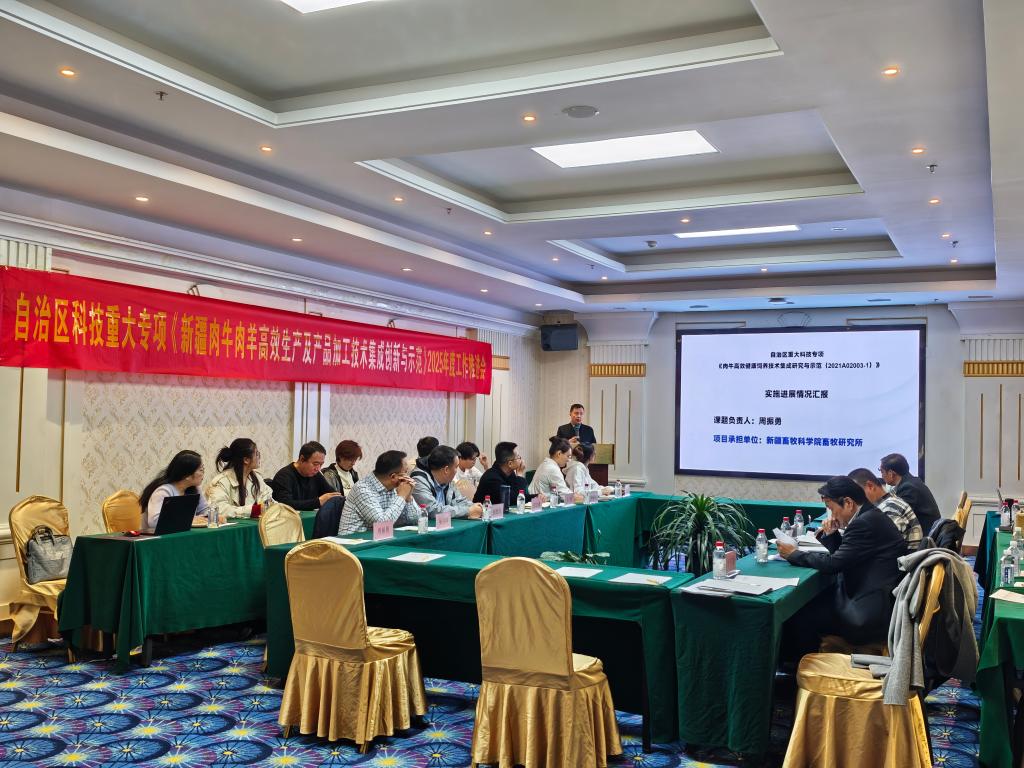 3月21日,由我院畜牧研究所承担的自治区科技重大专项“新疆肉牛肉羊高效生产及产品加工技术集成创新与示范”项目2025年度工作推进会在乌鲁木齐召开。会议由项目负责人李红波研究员主持,院畜牧研究所黄俊成所长、杨会国研究员,新疆农业大学姚刚教授团队、四川农业大学王之盛教授团队、新疆华凌农牧科技有限责任公司、伊犁职业技术学院、新疆天莱农牧集团、伊犁创锦犇牛牧业有限公司、新疆刀郎阳光农牧科技股份有限公司等疆内外高校和科研机构的课题负责人、课题组成员、单位代表等近30人参加会议。
