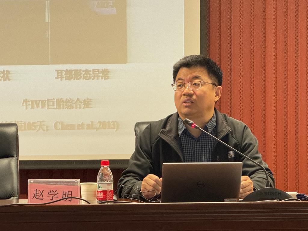 会上,赵学明研究员以“牛体外胚胎生产和冷冻技术研究”为主题,系统阐述了其团队在种质资源保存与遗传改良领域的研究进展。团队通过优化体外胚胎生产流程、革新卵母细胞培养体系,成功解析了胚胎发育的调控机制,显著提升了生产效率与质量稳定性。针对胚胎冷冻损伤问题,开发出新型代谢调控冷冻保护剂及程序化冷冻技术,有效增强了胚胎存活能力。同时,团队联合企业推动技术标准化与产业转化,建立了从研发到牧场的完整应用链条,制定了胚胎生产质控与移植规范,为加速奶牛遗传改良、助力畜牧业高质量发展及种业振兴战略提供了重要支撑。