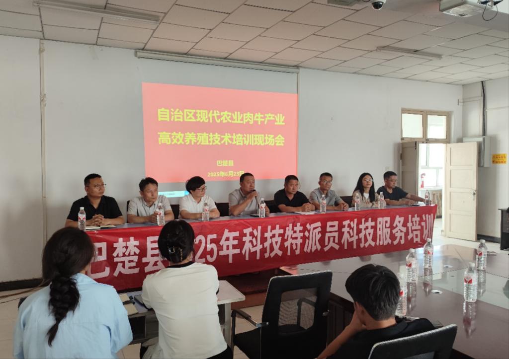 为提升巴楚县肉牛产业技术水平,推动科技成果转化应用,6月23日,国家肉牛牦牛产业技术体系岗位专家、自治区肉牛产业技术体系副首席、院畜牧研究所李红波研究员及团队成员受邀赴喀什地区巴楚县开展“肉牛高效养殖技术”培训。此次培训由自治区现代农业肉牛产业技术体系巴楚试验站牵头,巴楚县农业农村局、科技局及丰和畜牧业发展有限公司共同举办,来自全县各乡(镇)基层畜牧兽医技术人员、技术骨干及养殖场负责人等百余人参会。