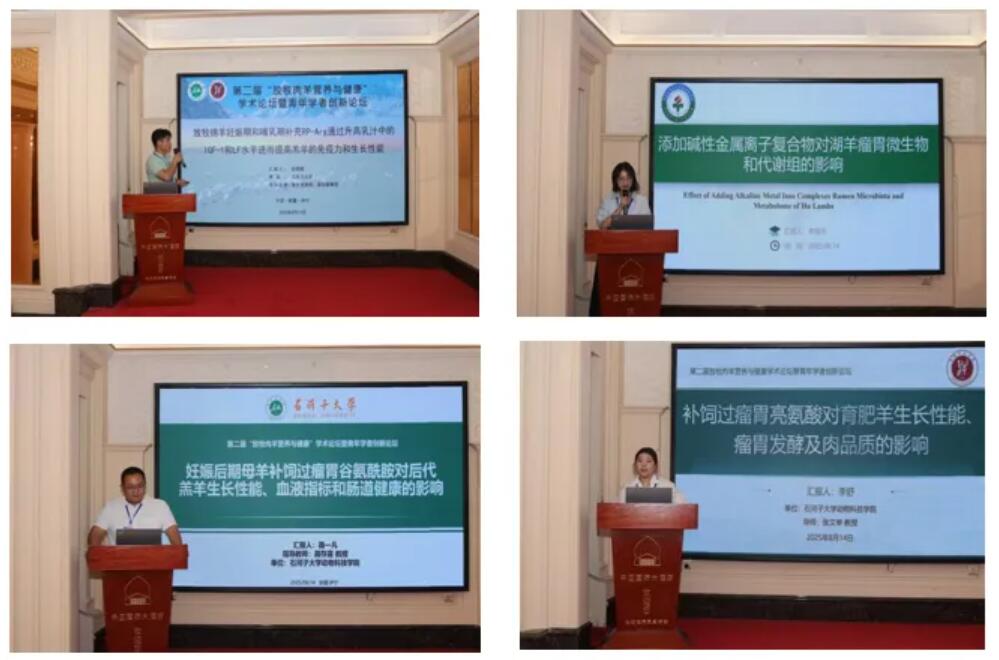 14日下午,青年学者创新论坛由石河子大学张文举教授主持,来自自治区畜科院、石河子大学、内蒙古农牧业科学院等科研院校的8位青年学者,就开食料NDF水平对哺乳羔羊生长性能、血清生化、养分消化率、瘤胃发酵参数及微生区系的影响,放牧肉羊妊娠期和哺乳期补充RP-Arg可提高乳中营养水平、羔羊生长和免疫性能等做了精彩报告。自治区畜科院王彦、武莹莲分获青年创新论坛优秀学术报告一等奖和三等奖。