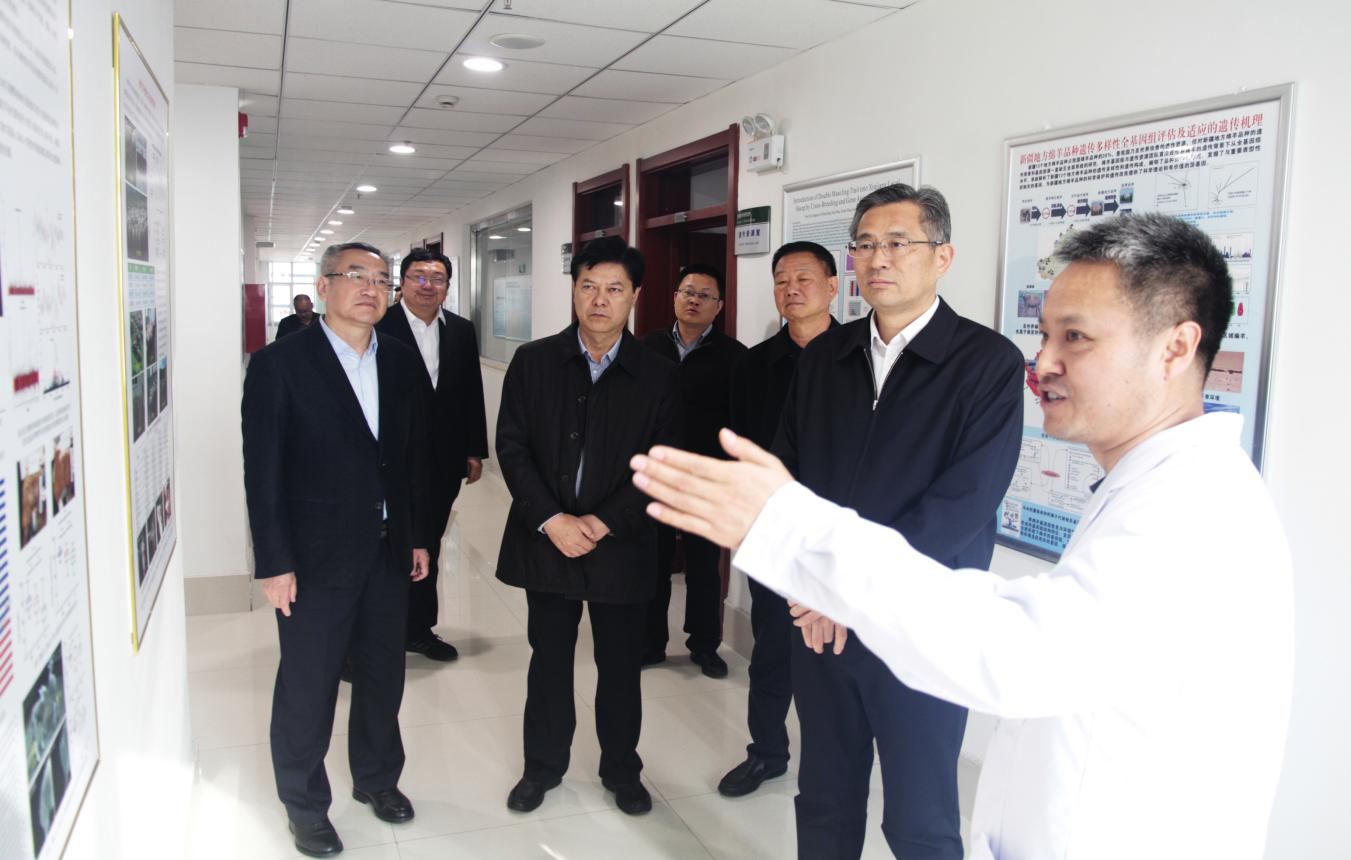 在生物技术研究所动物生物技术重点实验室,何忠友副书记在了解绵羊基因编辑及生物育种科研工作情况后,强调要加大“产学研”合作力度,研究集成和示范转化一批具有前瞻性、引领性的新技术,破解产业发展瓶颈问题。