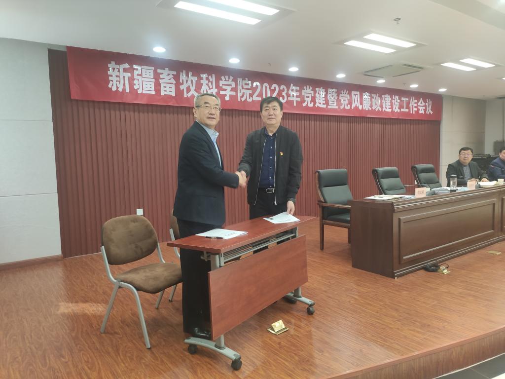 3月20日上午,新疆畜牧科学院召开2023年党建暨党风廉政建设工作会议,回顾总结我院2022年党建和党风廉政建设工作情况,研究部署2023年工作任务。会议由院党委副书记、院长郑文新同志主持,院党委委员、副院长曹宏斌代表院党委作了2022年党建暨党风廉政建设工作报告,宣读了《新疆畜牧科学院2023年党建工作要点》,院党委委员、副院长巴哈提别克·阿哈泰宣读了《新疆畜牧科学院2023年党风廉政建设工作要点》。自治区畜牧兽医局党组成员、院党委书记、副院长冯东河同志作重要讲话。院属各党支部书记及班子成员、支部委员,机关全体党员干部参加了会议。