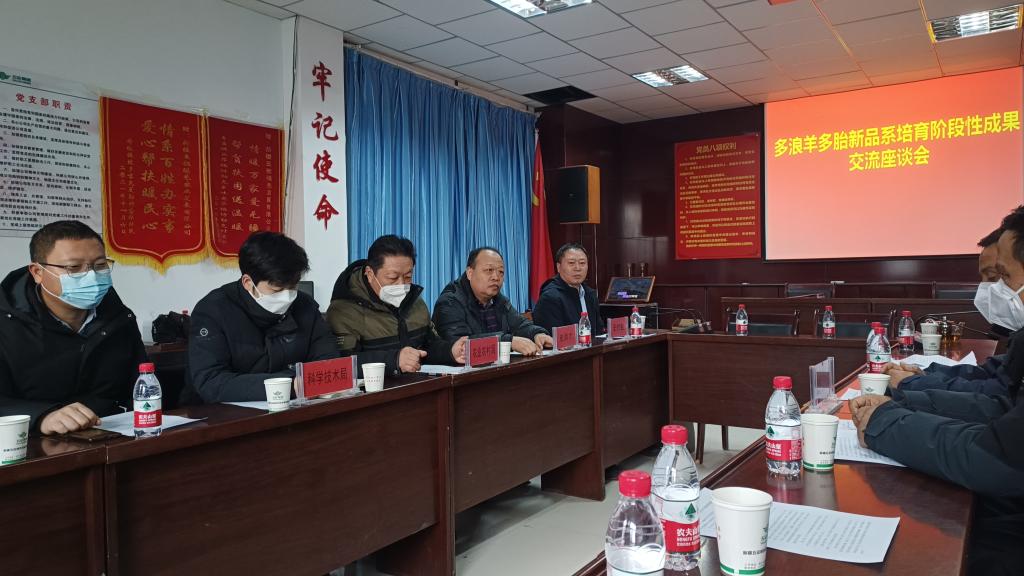 1月8日上午,喀什地区畜牧工作站、麦盖提县农业农村局、山东日照援疆指挥部的相关领导和专家、史洪才研究员专家团队以及五征公司相关负责人就多浪羊多胎新品系培育取得的阶段性成果进行了交流和座谈,与会人员对多浪羊多胎新品系的培育取得的进展给与了充分的肯定,同时希望多方努力加快培育进程,助力多浪羊产业高质量发展,促进农牧民增产增收。