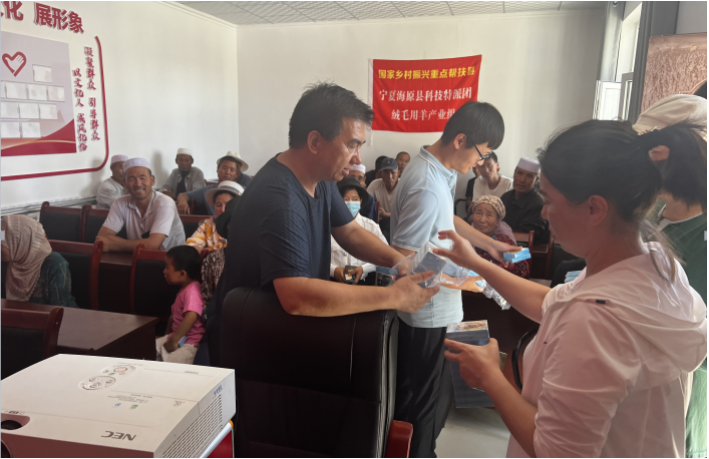 29日,帮扶组前往海原县贾塘乡双河村为养羊农户开展了实用技术培训,双河村畜牧专技人员、养羊农户共计80余人参加了培训。田月珍副研究员围绕“绵山羊全舍饲养殖关键技术”开展专题培训,主要针对全舍饲养羊的意义、舍饲养羊目前存在的问题、绵山羊生活习性及适应性、舍饲养羊关键技术等四个方面进行了重点讲解。阿依努尔·亚森副研究员围绕“兽用B超的应用与诊断技术”开展专题培训,就如何使用兽用B超诊断牛、羊疾病与妊娠等内容进行了详实介绍,鼓励广大养殖户学习先进科学技术并应用于养羊实践,有效提高生产效益,实现养殖增收。培训会上,帮扶组对养羊生产中遇到的疑难问题进行了现场答疑,并发放了繁殖技术手册400份、舔砖120块。
