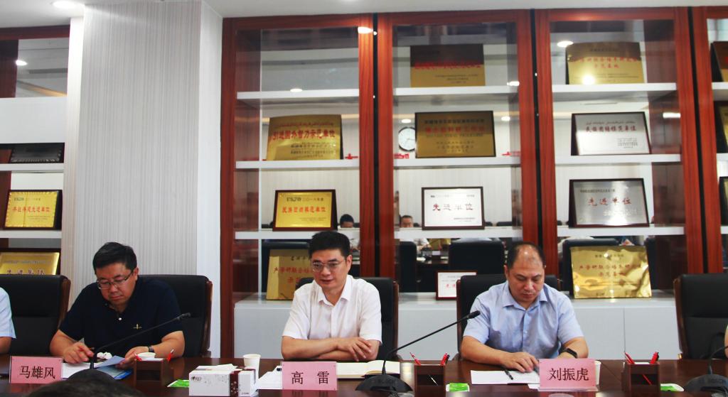7月4日下午,中国农业科学院西部农业研究中心主任(援疆指挥部总指挥)高雷一行8人来院调研座谈。座谈会由院党委副书记、院长郑文新主持。自治区畜牧兽医局党组成员,院党委书记、副院长冯东河,院机关各处(室)、院属相关研究所主要领导参加了会议。