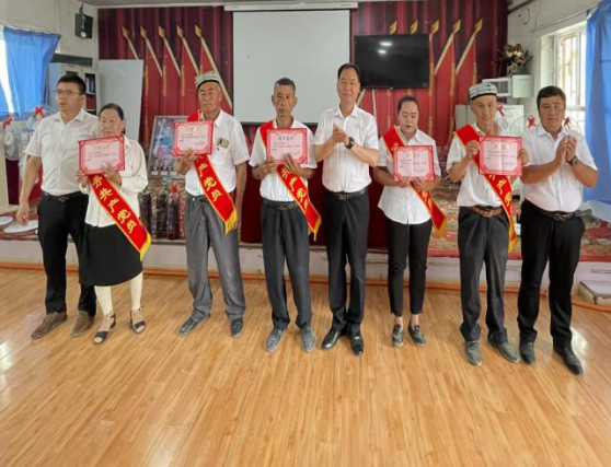 清晨,在嘹亮的国歌声中,12村和15村村委会大院内分别举行升国旗、唱国歌、党员互戴党徽以及为在党50年的老党员佩戴勋章仪式,并分别在各自村委会举行了“优秀共产党员”表彰仪式,为10名“优秀党员”颁发荣誉证书、绶带和奖品,勉励受表彰的先进个人再接再厉,再创佳绩,再建新功,号召全体共产党员要以先进为榜样,争当模范,争当排头兵,严格要求自己,积极配合村委会工作,引导督促身边的群众把乡村振兴、人居环境整治工作做为当前的重点工作来抓,以时不待我的紧迫感和使命感,为社会稳定、乡村振兴做出每个人应有的贡献。