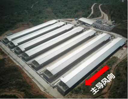 鸡舍应以单列平行排列为主,净污分区,鸡场采用整场全进全出工艺,或至少实施分区布局按区全进全出。鸡舍采用纵向通风,为防止排风粉尘在舍间交叉传播,排气风机应全部集中安装在处于场区下风向的鸡舍一端的山墙上,排风端山墙后需配置除尘间,并对舍内排出空气中的羽毛粉尘颗粒物等进行处理。