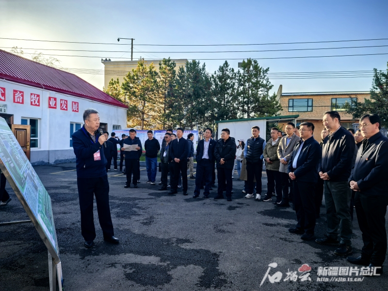 9月12日,与会代表们来到特克斯县社会化服务站观摩,自治区农业农村厅党组成员张加群正在向大家介绍草原畜牧业转型升级情况及特克斯县介绍全县畜牧业转型升级、畜牧兽医社会化服务等情况。石榴云/新疆日报记者 马帛宇摄