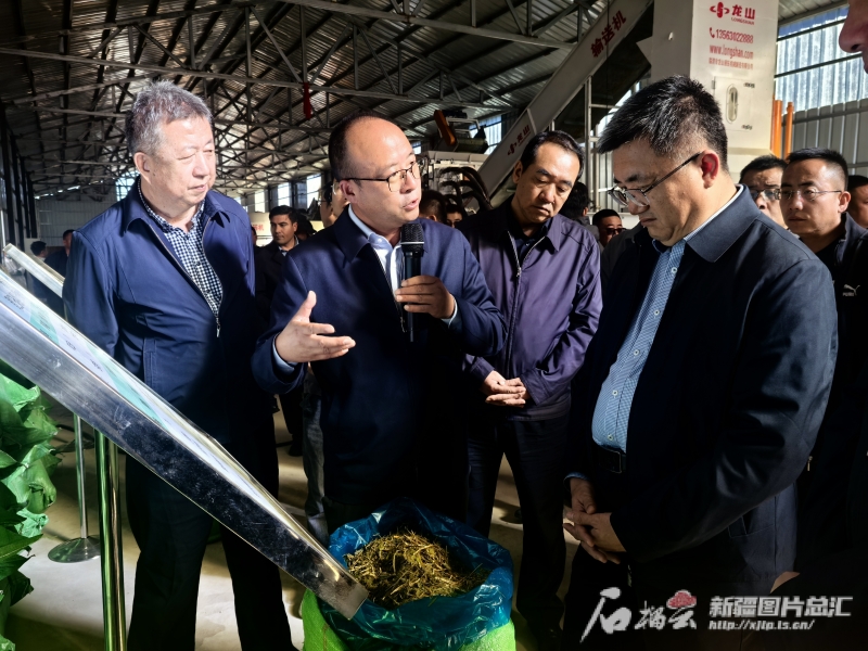 9月12日,与会代表们来到昭苏县喀夏加尔镇饲草料储备库观摩。石榴云/新疆日报记者 马帛宇摄